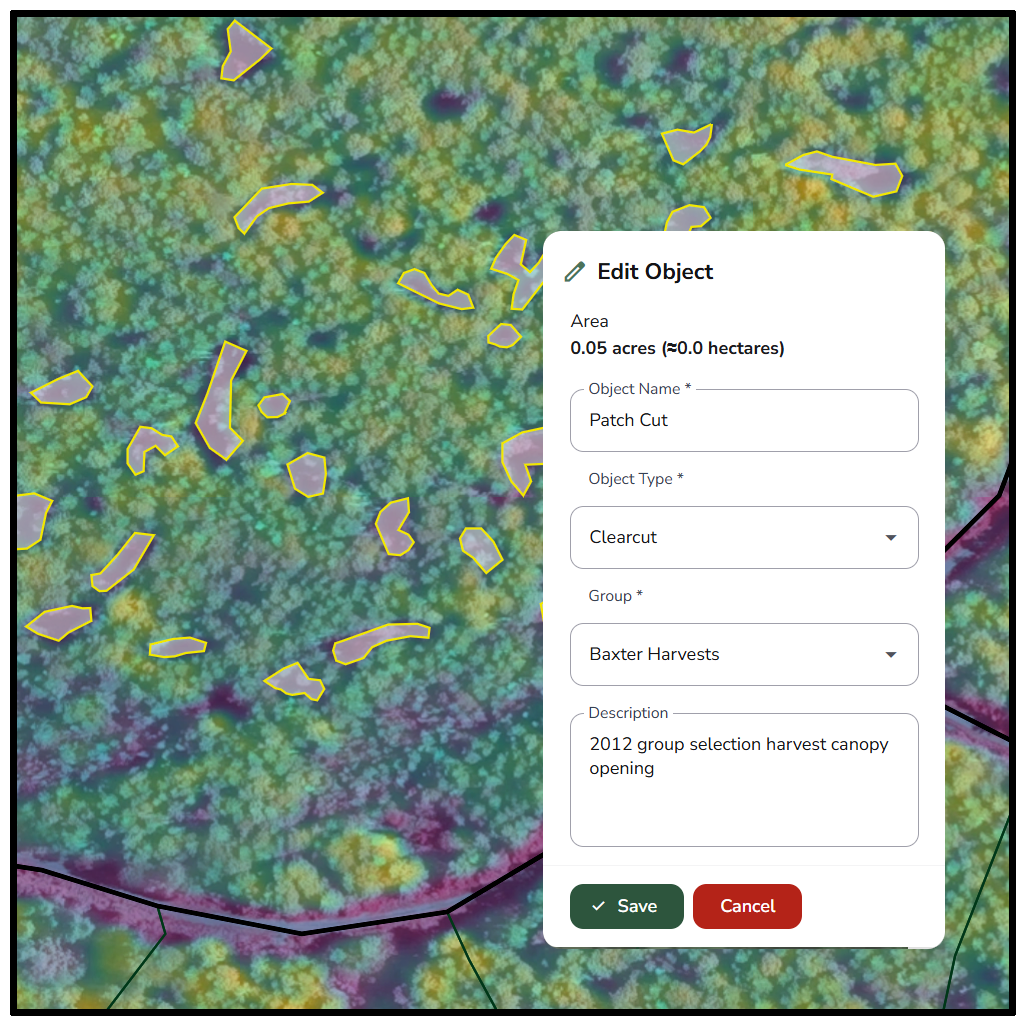 Our platform is suitable for properties large or small. Polygons can easily be created for entire forests thousands of acres of size, but the high-resolution imagery also allows for micro-management of isolated forest conditions, allowing you to manage your forest exactly according to your needs and objectives as a unique landowner.