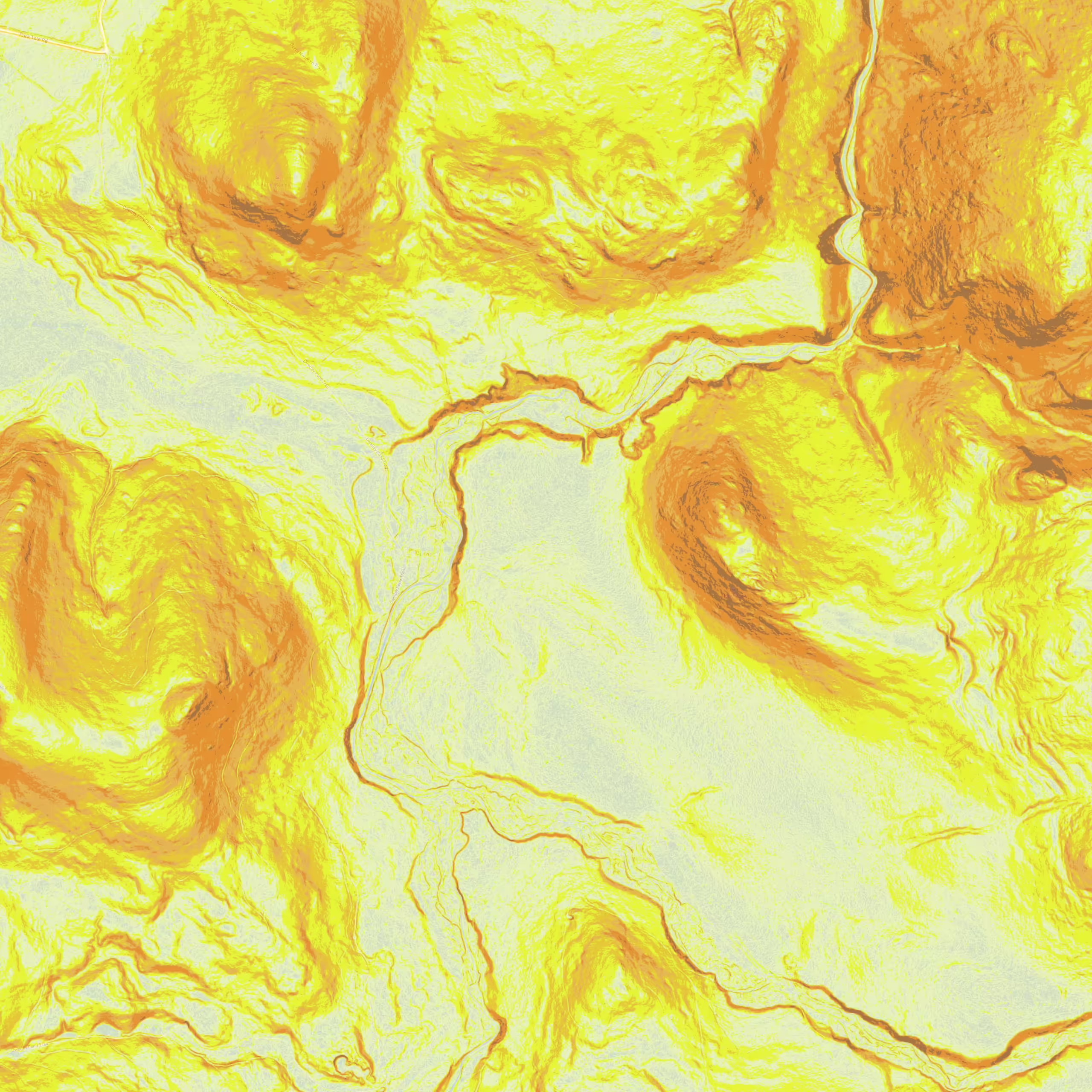 Use the LiDAR hillshade model to see a high-resolution model of the earths surface and find stream beds, roads, and other fine details.